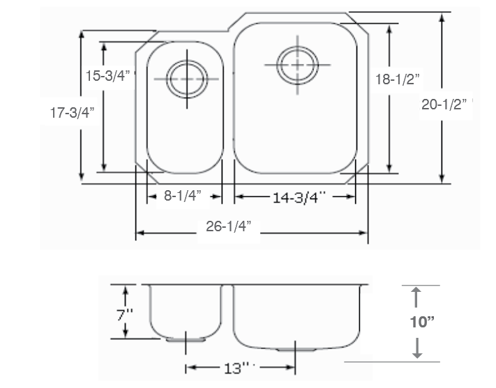 UKINOX 26″ Undermount Double Bowl 18 Guauge Stainless Steel Kitchen Sink
